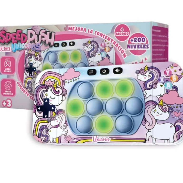Consola de tipo Fidget Toy de la colección Speed Push. Ideal para reducir el estrés y mejorar la concentración con diferentes modos de juego y más de 200 niveles. Al presionar los botones emiten una respuesta satisfactoria. Recomendado a partir de 3 años. EXISTEN MODELOS DIFERENTES. SE VENDEN POR SEPARADO. SE SURTIRÁN SEGÚN EXISTENCIAS. AL REALIZAR LA COMPRA, PUEDES RECIBIR CUALQUIER MODELO SURTIDO AL AZAR, INCLUIDOS MODELOS QUE NO SE ENCUENTREN EN LAS FOTOS. PRECIO POR UNIDAD.