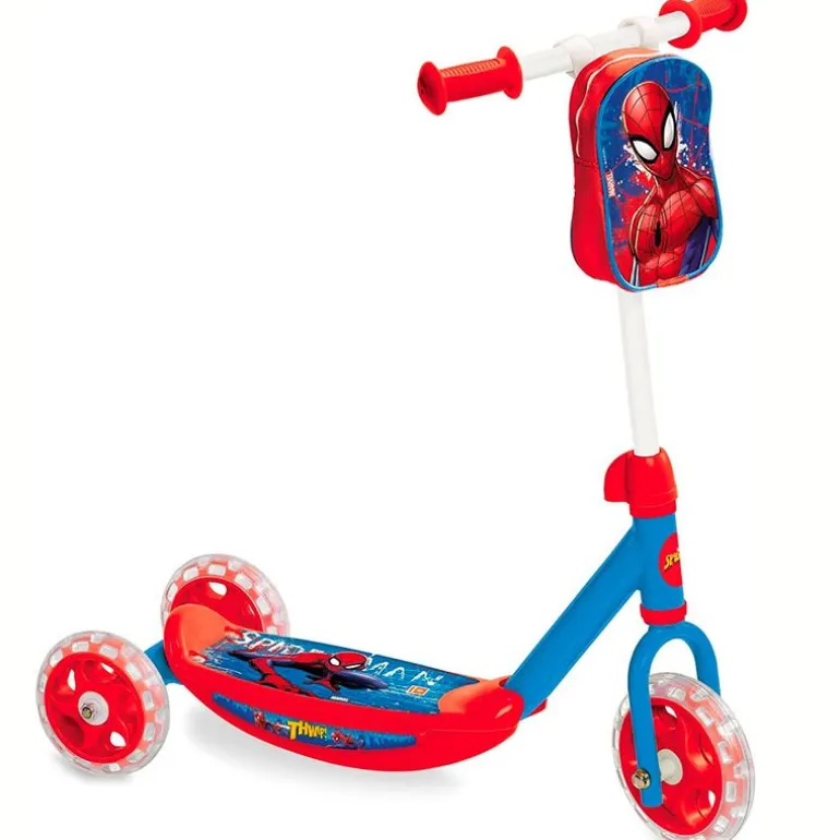 Patinete de 3 ruedas con diseños inspirados en el famoso superhéroe Spiderman. La altura del suelo al mango es de 59 cm en su máxima altura. Incluye una bolsa de almacenamiento para que puedas llevar contigo pequeños objetos. Las ruedas están fabricadas en PVC. Soporta un peso máximo de 20 kg.