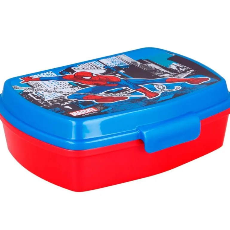 Sandwichera infantil, con original diseños inspirados en el superhéroe Spiderman, para que los más pequeños de la casa puedan llevar su merienda al parque, al colegio o más. Está fabricada en un material resistente, aguantará las caídas y golpes accidentales de uso diario. Libre de BPA. Tiene unas dimensiones de 5.6 cm de alto x 14 cm de ancho x 17 cm de fondo aproximadamente.