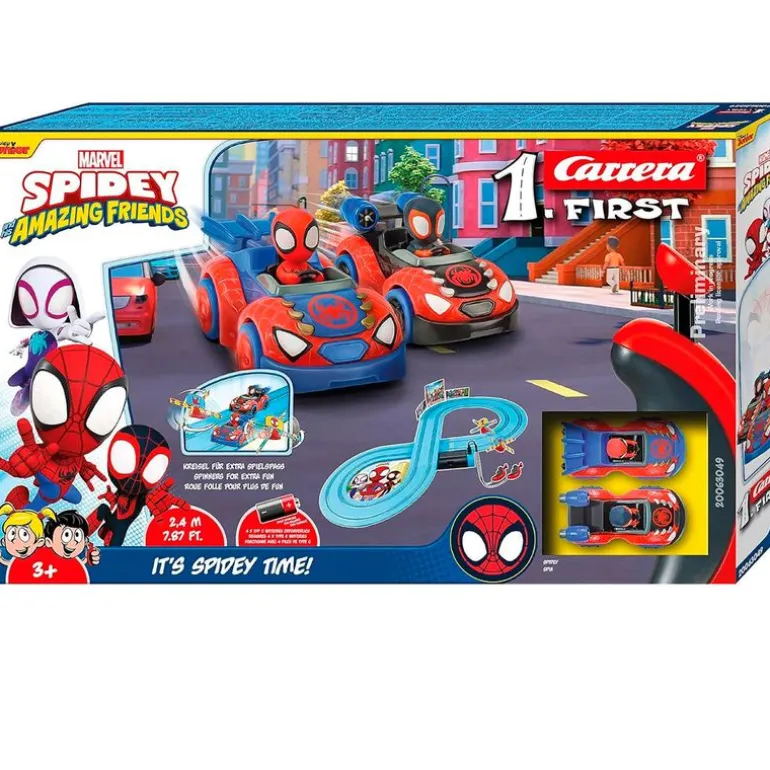 Circuito de carrera en forma de ocho de la colección Carrera First, para l@s más pequeñ@s de la casa, con diseños inspirados en la serie de animación Spidey y sus amigos.