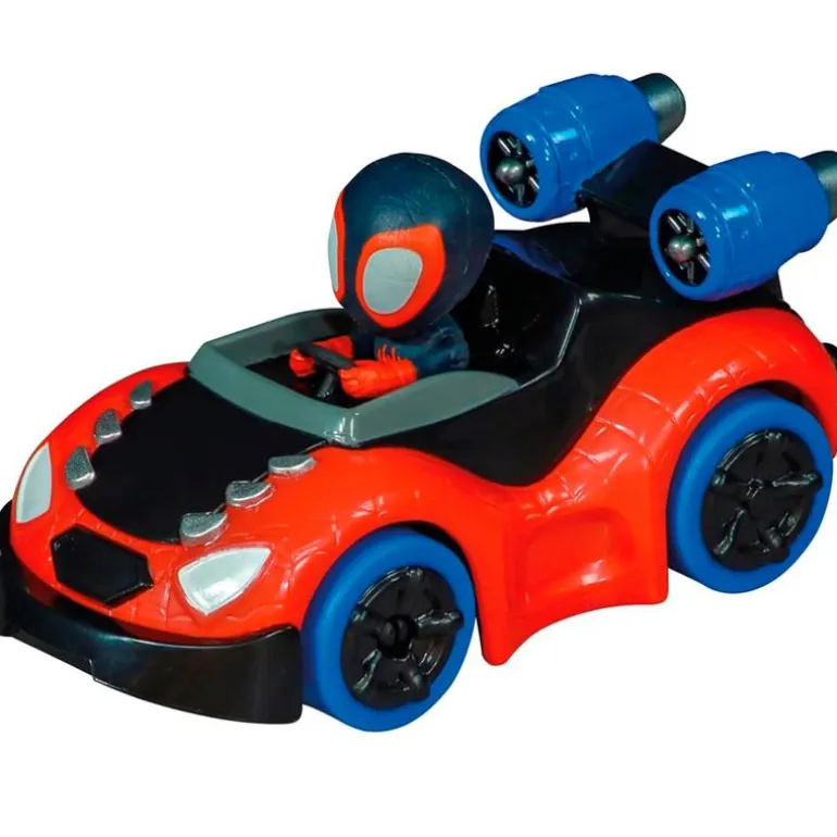 En el interior encontrarás los coches de carreras de Spidey y Miles Morales, en una escala de 1:50.
