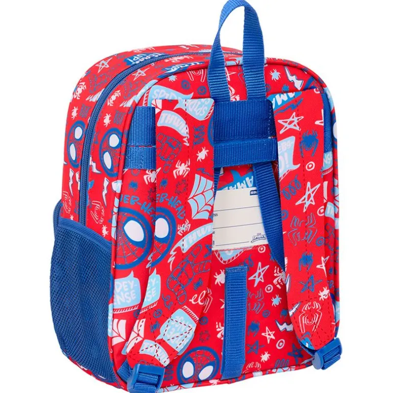Mochila con diseños inspirados en la serie de animación Spidey y fabricada en una suave tela de peluche, ideal para guardería.