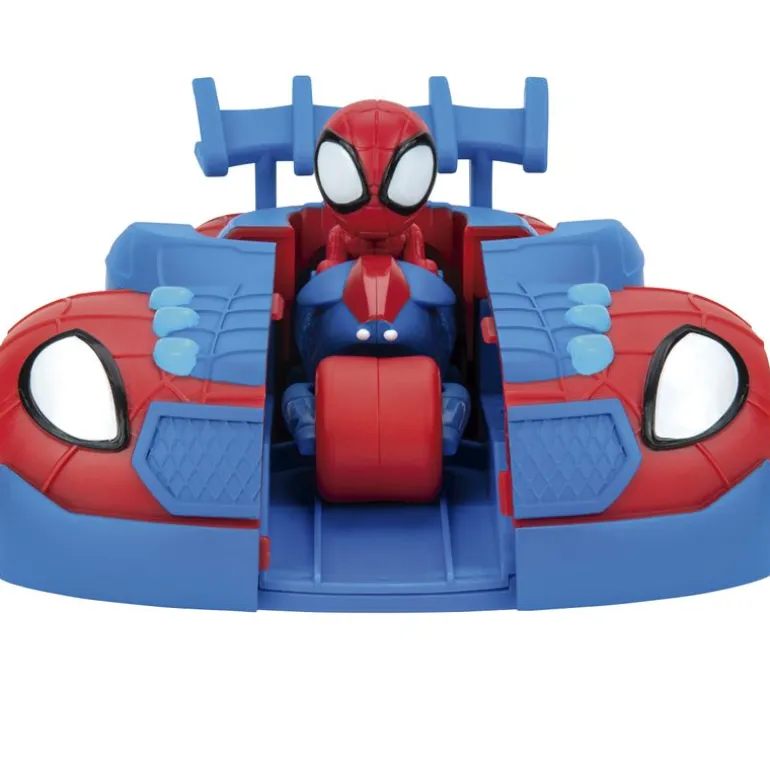 Vehículo 2 en 1 inspirado en el superhéroe de la serie de animación Spidey y sus amigos. El coche se abre para revelar la moto de Spiderman. Incluye una figura del superhéroe. Recomendado a partir de 3 años.