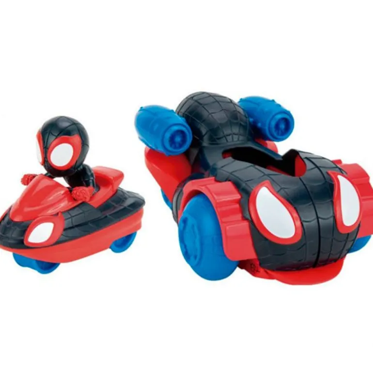Vehículo 2 en 1 inspirado en el superhéroe de la serie de animación Spidey y sus amigos. El coche se abre para revelar la moto de Miles Morales. Incluye una figura del superhéroe. Recomendado a partir de 3 años.
