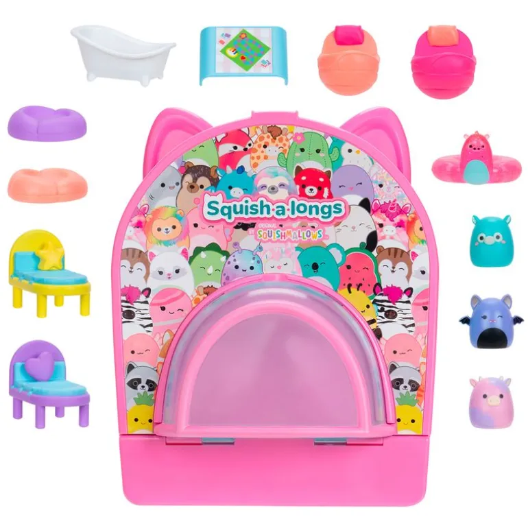 Playset en forma de mochila de la colección Squishmallows Squish a Longs de 2.5 cm aproximadamente.