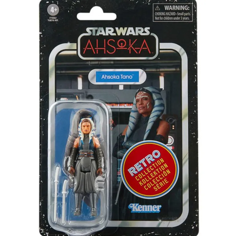 Figura inspirada en Ahsoka Tano, de la colección Kenner Retro Collection de Star Wars. Su tamaño es de 9.5 cm aproximadamente y va acompañada de accesorios. Recomendado a partir de 4 años.