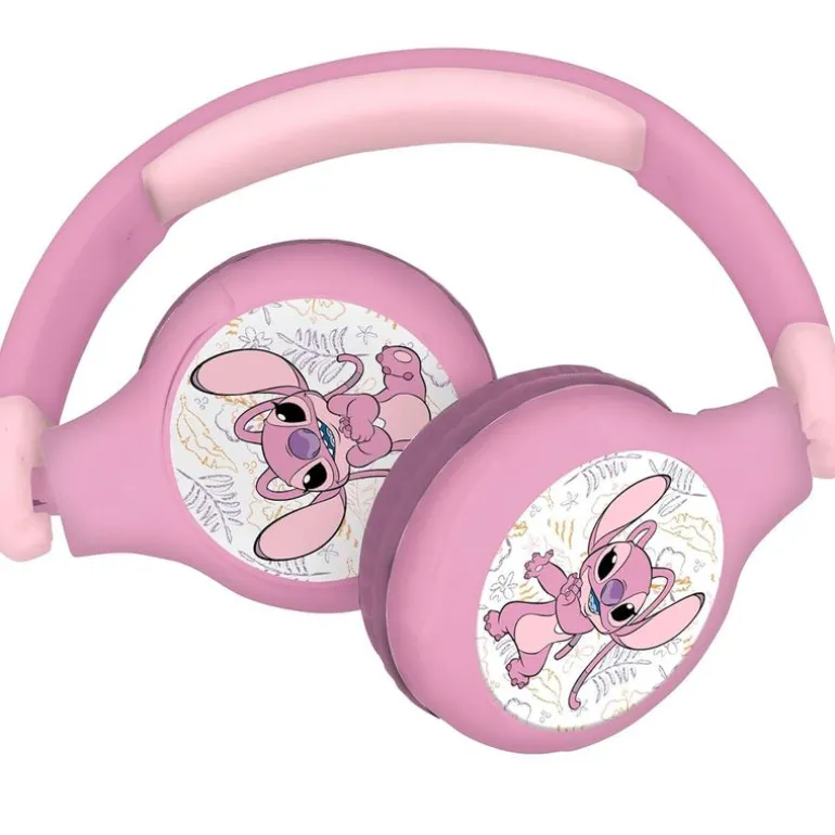 Auriculares de audio 2 en 1 con diseños inspirados en la película de animación Lilo & Stitch, ideales para escuchar música de forma inalámbrica en Bluetooth 5.0 (hasta 10 m de alcance) o enchufados con el cable Jack extraíble.