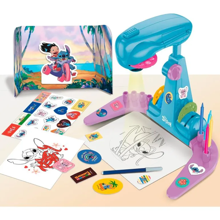 Gracias al proyector de dibujo LED, los niños pueden dibujar a Stitch, Ángel y sus amigos. Basta con proyectar la imagen, planchar los contornos y colorear para crear su propia escena Disney.