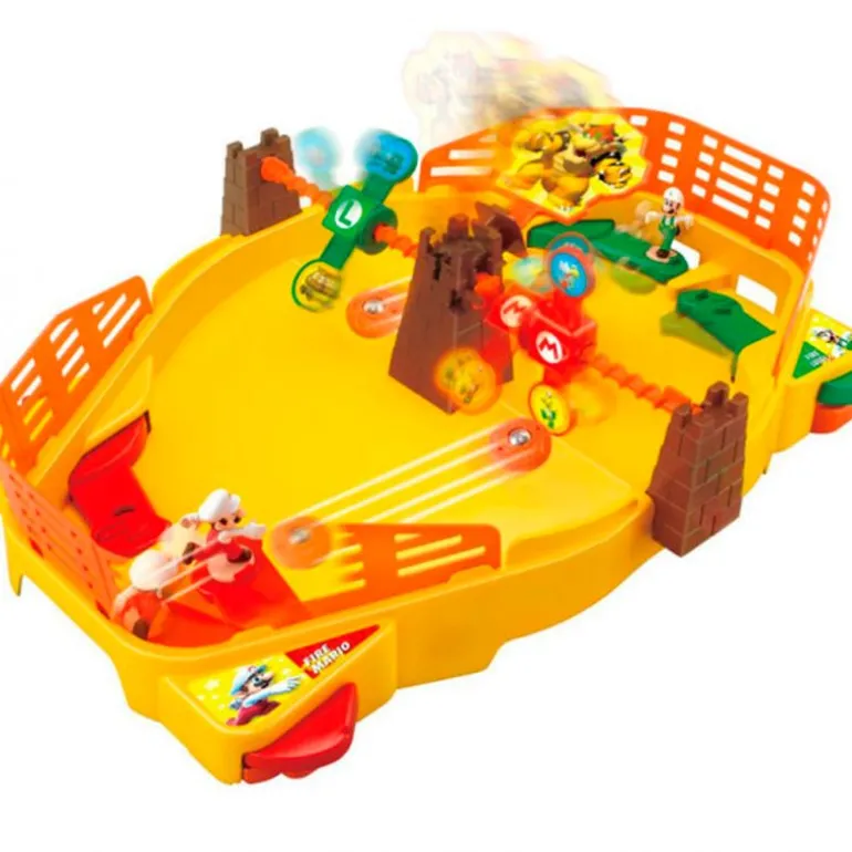 Estadio de fuego inspirado en el videojuego de plataformas Super Mario. En este juego deberás disparar al objetivo de tu personaje para poder atacar. Al pulsar los botones laterales disparar el disco de fuego ¡Dispara a tu oponente para llegar antes que tu oponente! Ganará el primero en derrotar al malvado Bowser. Recomendado a partir de 5 años.