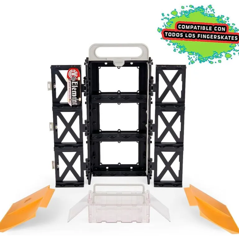 Skateshop play & display es un alucinante estuche que se transforma en funbox y en rampa para que puedas practicar todos tus trucos. En el interior puedes guardar hasta 24 monopatines de dedos (NO incluidos). Despliega el estuche para convertirlo en una tampa con una funbox y barandillas que te permitan saltar y hacer trucos. En el interior encontrarás un monopatín de la colección, una rampa de entrada grande, una rampa de entrada, una barandilla larga para la parte inferior, una barandilla larga para la parte superior, un panel cuadrado, un panel Tech Deck, una escalera, 2 cubiertas de hubba, una parte inferior del hubba para la escaleras y una parte inferior plana del hubba. Recomendado a partir de 6 años.