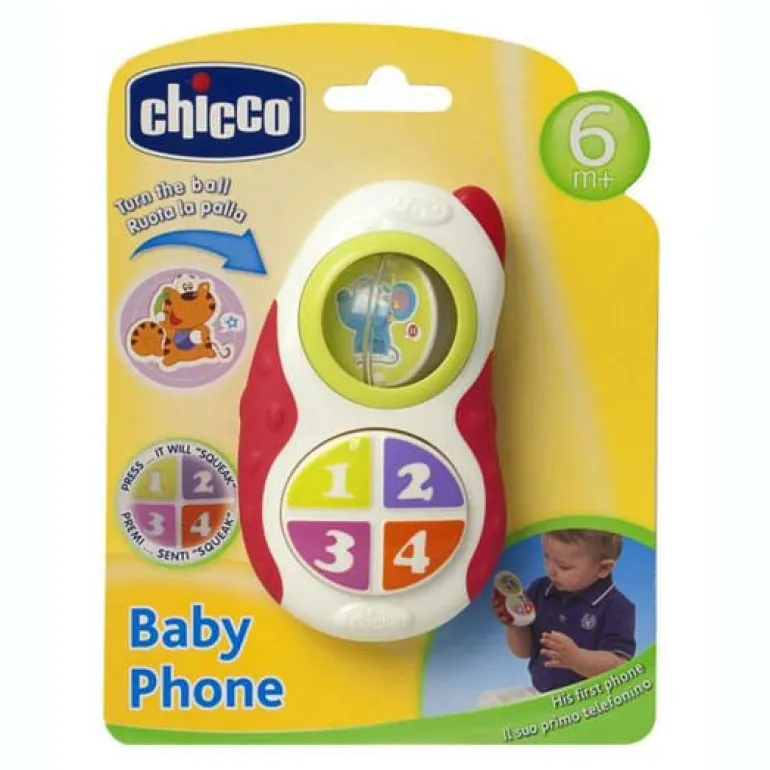 Teléfono de forma ergonómica y multitud de colores para estimular la capacidad visual del niño. Ofrece actividades manuales que favorecen el desarrollo de la coordinación manual : gira la bola y pulsa los botones para oír el sonido.