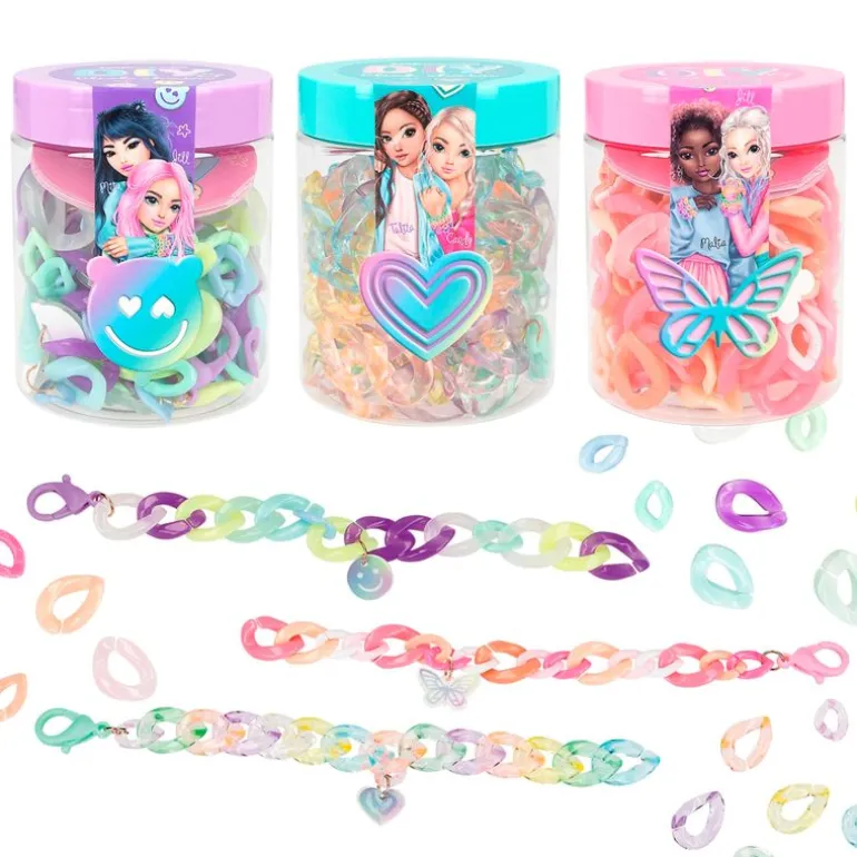 Simplemente enlazando los eslabones multicolor de este pack podrás crear piezas de bisutería.
