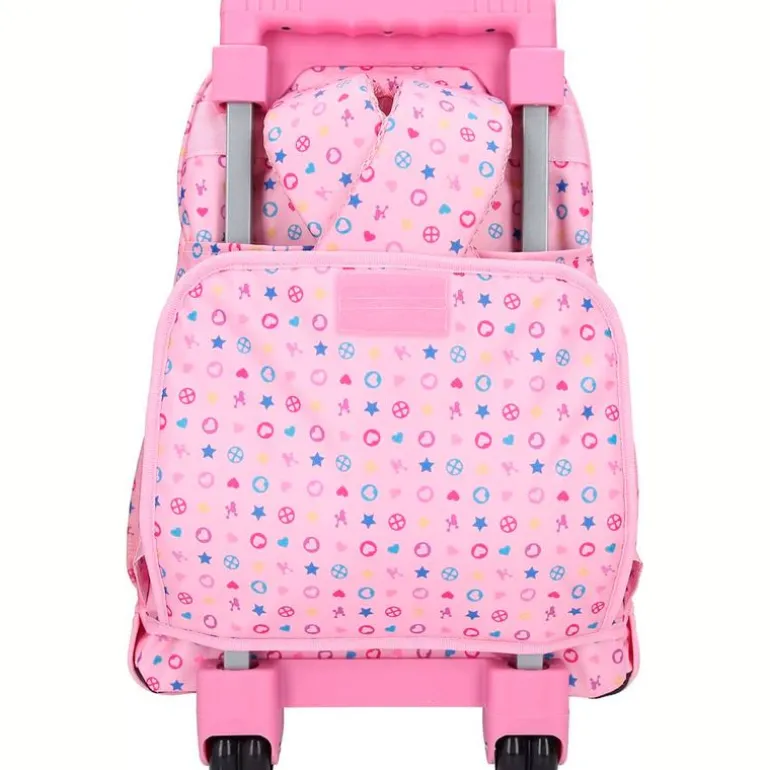 Mochila escolar de la colección TOP MODEL con tres grandes compartimentos, de diferentes tamaños, para que puedas guardar tus libros y accesorios escolares. Tiene dos bolsillos laterales para botellas de bebidas o el paraguas. Viene acompañado de un carro con ruedas ligeras y un mango telescópico, se puede retirar. Las dimensiones de la mochila son de 51.5 cm x 34 cm x 24 cm aproximadamente.
