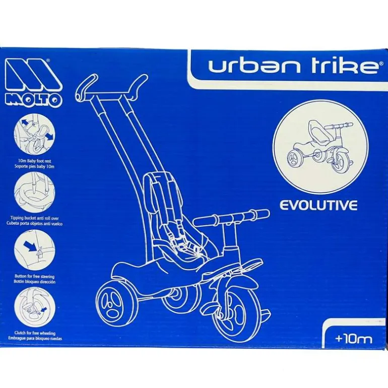 Triciclo evolutivo con un diseño ligero, y un nuevo sistema de conducción SOFT CONTROL que facilita el manejo a los padres. El triciclo cuenta con una estructura metálica resistente, ruedas de goma silenciosas y mango desmontable. Incluye, además, dirección asistida desde el mango, cinturón de seguridad, 1 bolsa para guardar cosita, soporte para pies, 1 arco de seguridad extraíble y pedales antideslizantes. El triciclo evoluciona hasta en 5 formas diferentes dependiendo de las necesidades del niño/a según su edad. Edad recomendada de 10 meses a 3 años.