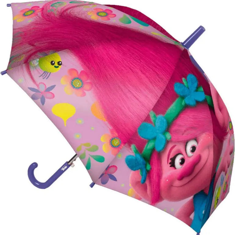 Paraguas manual infantil con diseños inspirados en la divertida película de animación Trolls.