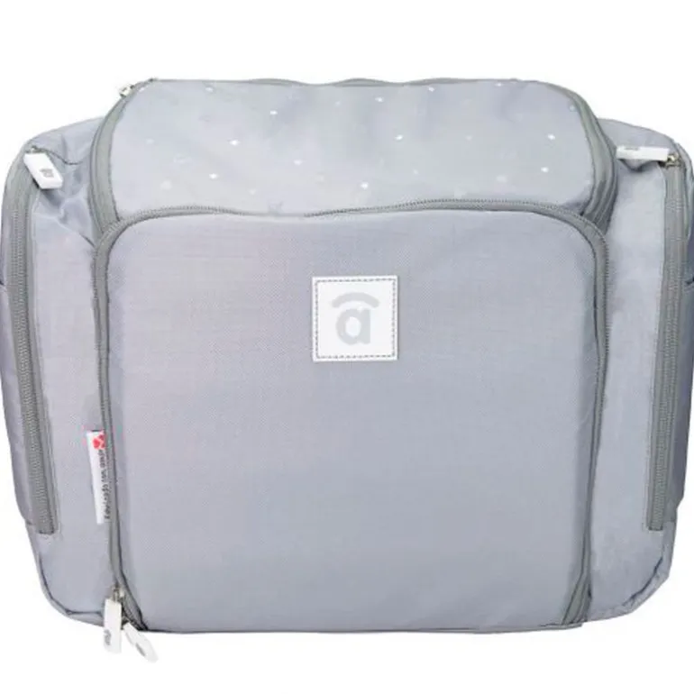 Incluye bolsillos para poder guardar los accesorios dle bebe, y 2 espacios aislados para biberones.