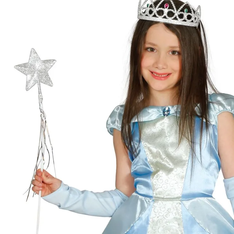 ¡Completa tu disfraz de hada! Varita en color plateado y con tiras que caen de purpurina. Tiene una medida de 45 cm aproximadamente. NO incluye disfraz y corona. Recomendado a partir de 3 años.