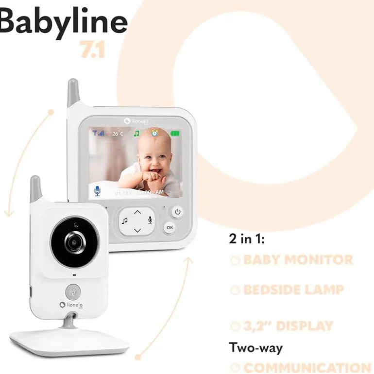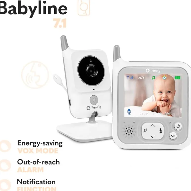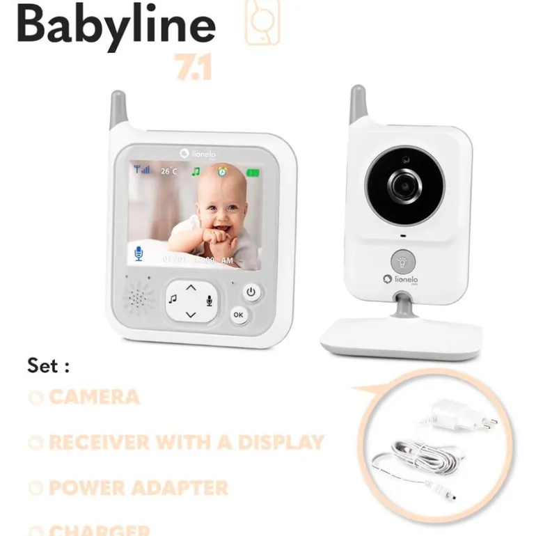 Babyline de 7.1 es un vigila bebe muy completo que tiene la cámara con micro, altavoz e indicador de temperatura incorporado.