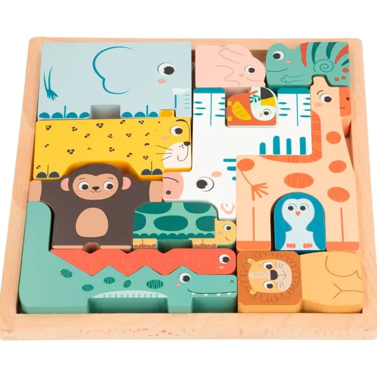 Juego para los más pequeños de la casa en el que encontrarás fichas para apilar los diferentes animalitos de madera. También podrás jugar a encajar los diferentes animalitos en sus sitios. Fabricado en madera natural, ideal para el desarrollo de la imaginación, coordinación ojo-mano y estimula los sentidos. Recomendado a partir de 18 meses.