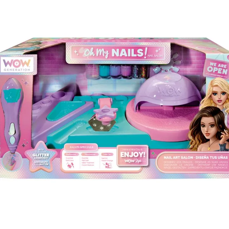 Estudio de uñas de la colección WOW Generation con el que las más pequeñas de la casa podrás convertirse en una profesional del art nailing. En el interior encontrarás un estudio de uñas con lámpara para secado de esmalte, lápiz mágico para decorar tus uñas con purpurina, estamper para decorar con formas y dibujos tus uñas, lima y esmalte de uñas de color. Recomendado a partir de 8 años.