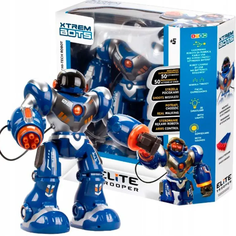 Su brazo derecho cuenta con un cañón que dispara 5 dardos, parte de sus impresionantes 20 funciones diferentes.