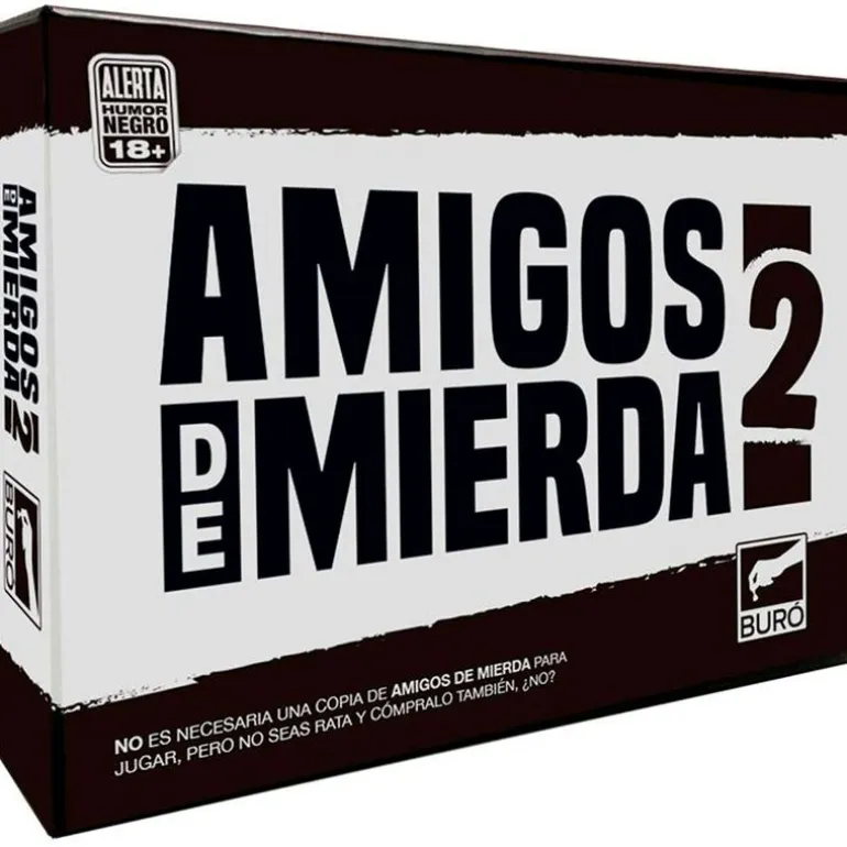 ERES UN FALSO ¡Pero te vamos a ayudar! En Amigos de Mierda vas a poder decirles a tus amigos lo que siempre pensaste de ellos y nunca te atreviste a decirles. En cada turno, se saca una carta y se lee en voz alta. Todos votan la respuesta entre los que están jugando. El que tenga más votos gana la carta y el primero en ganar cinco es coronado como un ‘Amigo de Mierda’. De 3 a 22 jugadores. Puedes jugar con este juego o añadir las cartas del primer juego AMIGOS DE MIERDA (REF BURO100219/ NO INCLUIDO SE VENDE POR SEPARADO). Recomendado a partir de 18 años.