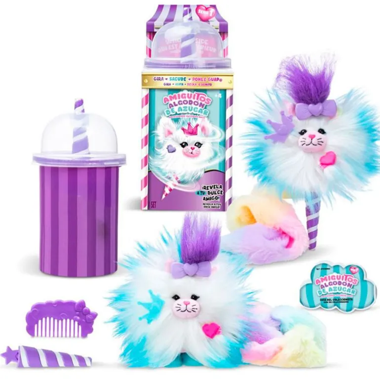 Disfruta de un divertido proceso dónde girando el cono y agitando, descubrirás un precioso peluche al que peinar, colocar accesorios en su pelazo, ponerle pies para sujetarse en cualquier superficie y customizarlo a tu gusto.