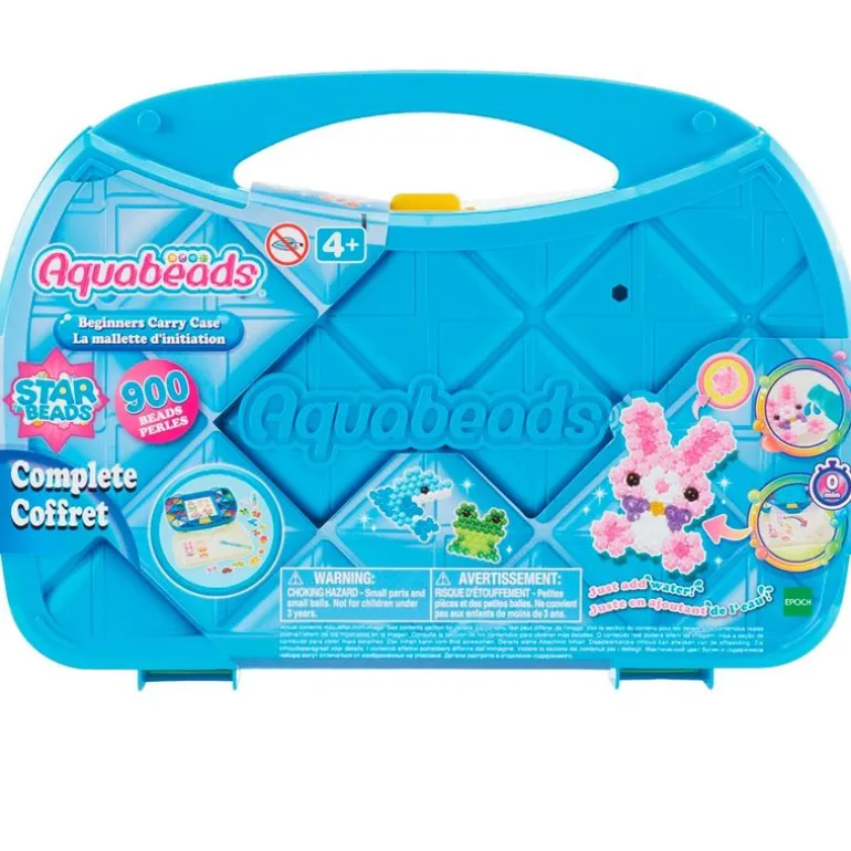 Pack de la colección Aquabeads para principiantes. En el interior encontrarás 900 abalorios de 24 colores diferentes. En el interior encontrarás una bandeja abatible, una caja organizadora de abalorios, un bolígrafo creador de doble cara, un pulverizador, bandeja, clavijas de diseño, plantillas y las instrucciones. Recomendado a partir de 4 años.