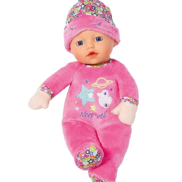 Baby Born es un adorable muñeco bebé con el que los más pequeños de la casa podrán quedarse dormidos. Esta muñeca bebé está fabricada en suave tela, ideal para los bebés más pequeños. Mide 30 cm aproximadamente. El cuerpo y las extremidades de la muñeca están hechos de tela con suave relleno, la cabeza es de vinilo. Se puede lavar a mano después de haber quitado el dispositivo de sonido. Recomendado a partir de 0 meses.