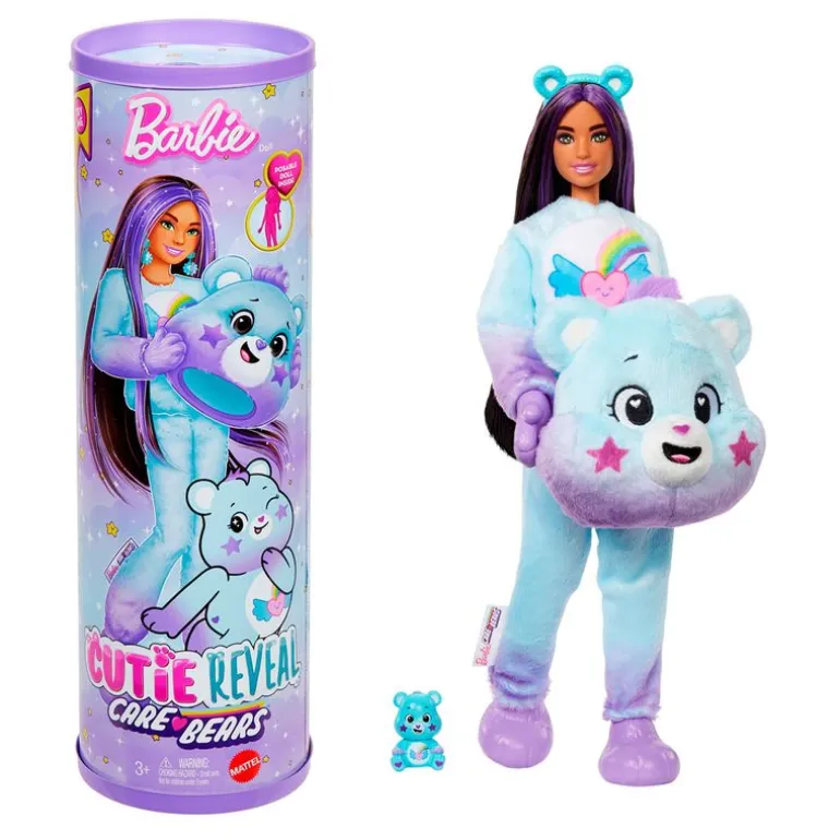Con 10 sorpresas para descubrir, las muñecas Barbie Cutie Reveal de la colección Care Bears ofrecen una experiencia de lo más adorable con sus disfraces de peluche, su ropa y la función de transformación.