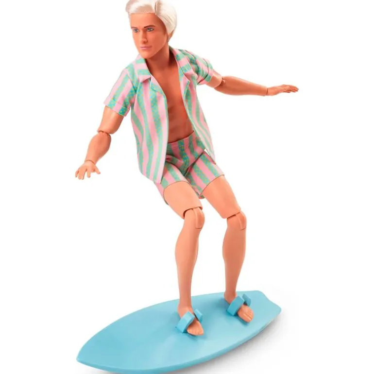 Va vestido con su conjunto surfero informal, se lo está pasando de maravilla en Barbie Land.