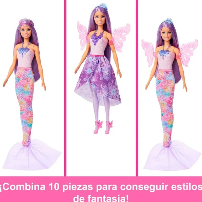 ¡Mezcla y combina más de 10 looks mágicos para esta muñeca Barbie con el pack de moda fantasía!