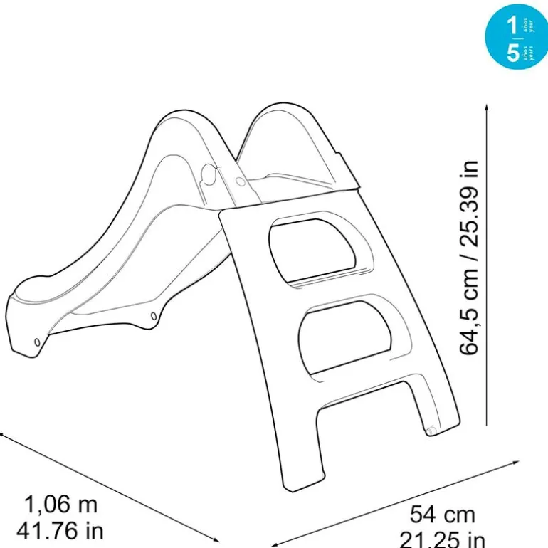 Tobogán para los más pequeños de la casa con diseños inspirados en la serie de animación Bluey. Los más pequeños de la casa se divertirán subiendo y deslizándose por él. En verano le puedes conectar a una manguera de jardín para que se transforme en un tobogán de agua. Tiene unas dimensiones de 64.5 cm x 41.76 cm x 21.25 cm aproximadamente. Recomendado a partir de 1 año.