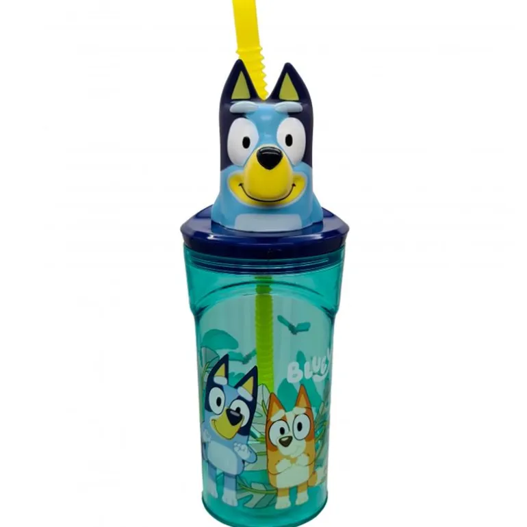 Bonito Vaso reutilizable del personaje Bluey en 3D, con pajita y tapa, para poder disfrutar de tus bebidas favoritas. Producto libre de BPA. Dimensiones: 23 x 7.5 x 7.5 cm Peso: 92 g Capacidad: 360 ml Composición: Plástico