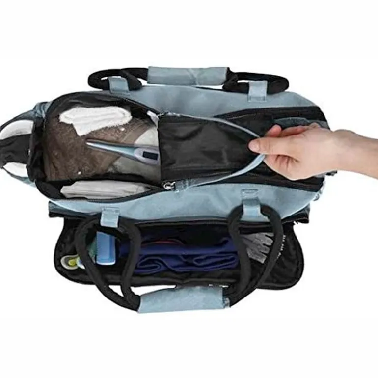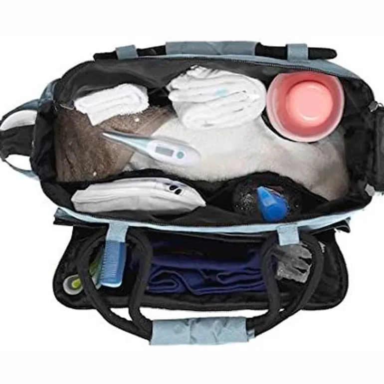 Bolso de gran capacidad ideal para pasear, su bolsillo exterior permite acceder fácilmente a las cosas del bebé o las de los padres. Contiene accesorios como un cambiador, una funda isotérmica, una funda plastificada y 2 sujeciones para el carrito. Ligero y que podrás llevar como bandolera o en la mano.
