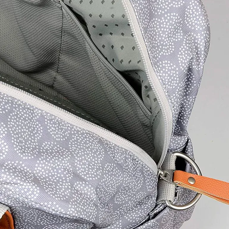 Bolso cambiador modulable, gran capacidad y estilo decididamente moderno. Dispone de un bolsillo delantero extraíble, ideal para acompañarte en los pequeños desplazamientos. Tiene un sistema de sujeción a la sillita integrado con mosquetones, se adapta a la mayoría de sillas con manillar abierto o cerrado. Dispone de las siguientes prestaciones: Sistema de enganche alrededor retráctil, bandolera extraíble, numerosos espacios para guardar cosas, una bolsa para transportar tanto las cosas de los mayores como las de los más pequeños. Bolsa isotérmica para comidas, permite mantener la comida del bebé tanto caliente como fría. Cambiador acolchado, estuche para guardar y proteger los chupetes en forma de brik, mosquetón para engancharlo a la bolsa durante los desplazamientos. Limpiar manualmente con esponja húmeda o lavar a máquina en ciclo delicado. Lavar el cambiador a máquina a 30 grados. Dimensiones 44 cm x 26 cm x 30 cm aproximadamente.