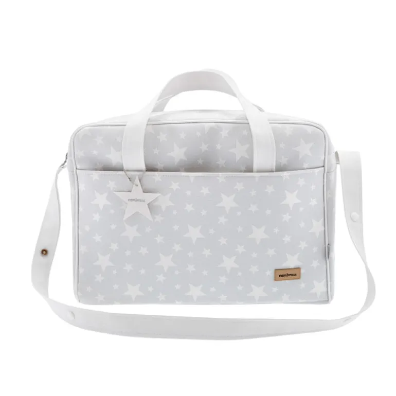 El Bolso Maletín de Cambrass es de uso maternal y sirve para transportar los productos necesarios de uso diario para el bebé especialmente en viajes. Su sistema de asas cortas de 60 cm. y asa larga de 120 cm. lo hace útil tanto como bolso de mano o maletín así como de bandolera o incluso para el carro. El tejido interior (con acabado resinado) con el que está confeccionado el bolso cuentan con un acabado impermeable que sumado a su base rígida aporta estabilidad evitando que pierda su forma tanto lleno como vacío e incluso después del lavado. Este bolso, cuya capacidad es de 25.8 litros, dispone de prácticos bolsillos frontales interiores y exteriores que aumentan su capacidad permitiendo guardar pequeños objetos. Además su cierre con cremallera YKK de alta calidad garantiza una larga duración.