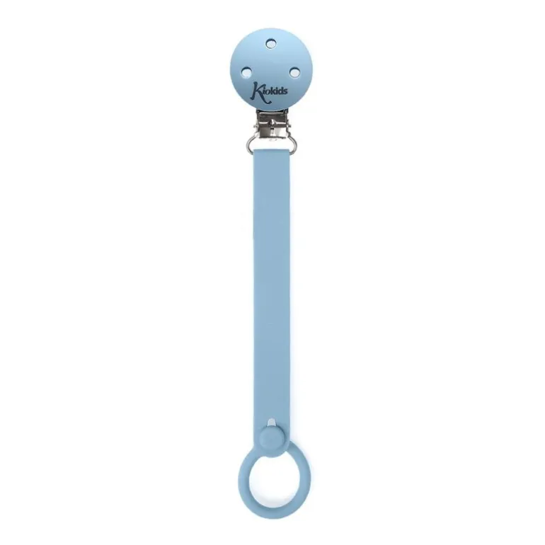 Cadena porta chupete de silicona que se adapta a los chupetes con anilla, y pinza de acero inoxidable para sujetar en la ropa.