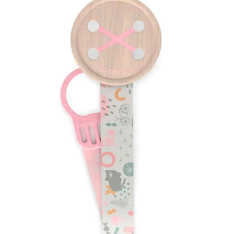 Cadena para el chupete con cinta textil y clip que permite sujetarlo suavemente a la ropa del bebe o al carro evitando que caiga al suelo y se ensucie o bien se pierda