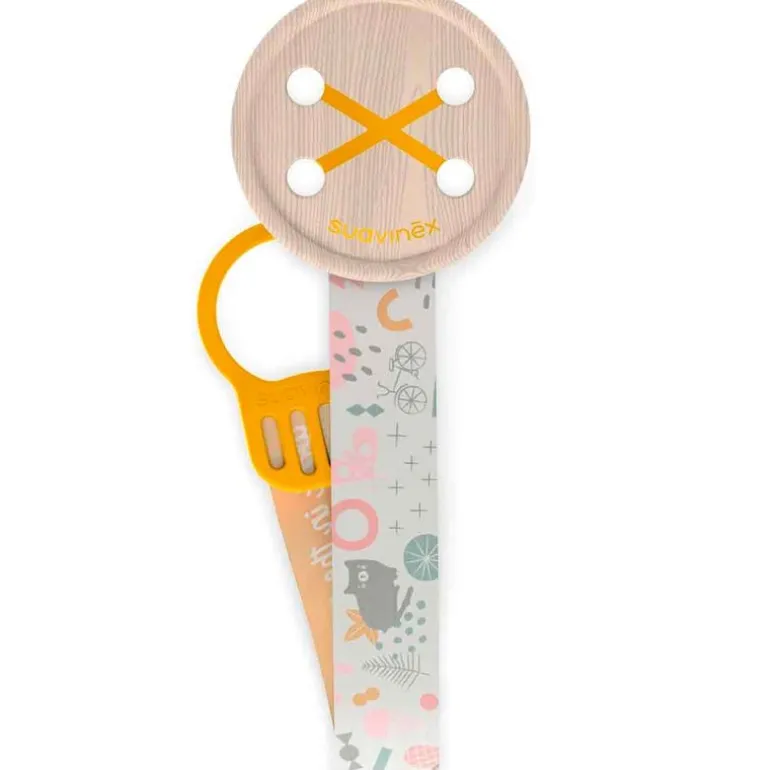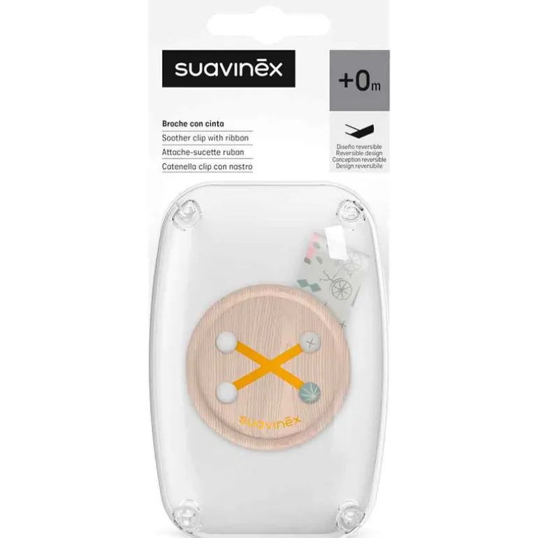Cadena para el chupete con cinta textil y clip que permite sujetarlo suavemente a la ropa del bebe o al carro evitando que caiga al suelo y se ensucie o bien se pierda