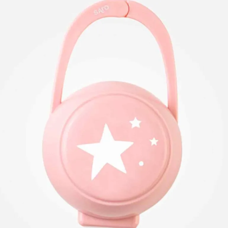Esta cajita porta chupete permite que tú bebe siempre tenga limpio su chupete cuando no lo utilice, esta cajita puede guardar 2uds, y tiene un divertido dibujo de una estrella.