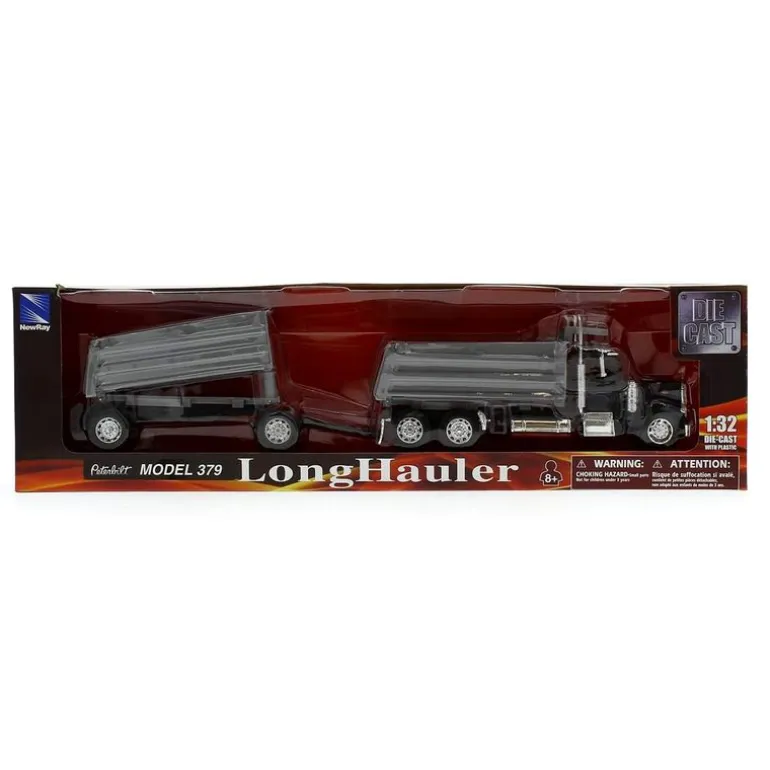 Rèplica de camión americano con un gran nivel de detalles a escala 1:32 de color gris. Las carrocerias de este camion es de metal y su decoracion de plástico con mucho realismo hará las delicias de los amantes de los vehículos de grandes dimensiones.