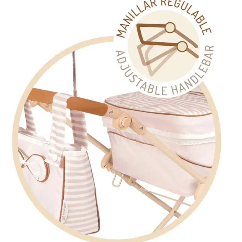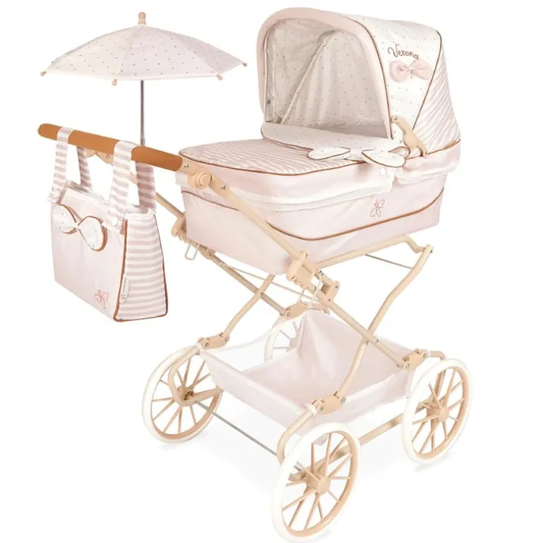 arro para tus muñecas Reborn de la preciosa línea Verona de DeCuevas. El carro tiene todo lujo de detalles como la sombrilla para los días soleados, el capazo de gran tamaño, la capota extensible para bajar el linvel de luz en el interior, la bandeja portaobjetos para los accesorios, ruedas silenciosas para jugar por casa y muchas más ventajas de uso. NO INCLUYE MUÑECO BEBÉ. El carro tiene unas dimensiones de 90 cm de alto hasta el manillar, 40 cm de ancho y 90 cm de largo. Las dimensiones del interior del capazo son de 53 cm de largo x 32 cm de ancho. Ideal para muñecas bebé de hasta 55 cm de largo. Recomendado a partir de 3 años. *Nota: para ver si el carrito puede venirle bien en altura, mida desde el suelo hasta el codo de la niña y comparelo con la altura del manillar