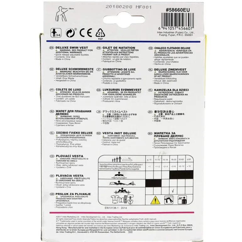 Chaleco hinchable infantil para l@s más pequeñ@s, en un llamativo color amarillo. Dispone de 3 cámaras de aire y su cuello también se puede hinchar. Como complementos incluye 2 hebillas de ajuste con bloqueo rápido. Sus dimensiones son de 50 cm x 47 cm aproximadamente. Recomendado de 3 a 6 años.