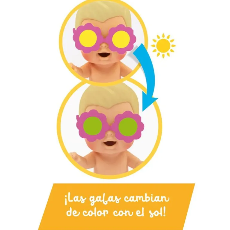 Muñeco bebé de la colección Amicicci Beach Time. Va vestido con un bañador de colores extraíble e intercambiable y unas gafas de sol divertidas. Contiene un accesorio de verano. Recomendado a partir de 3 años. EXISTEN MODELOS DIFERENTES. SE VENDEN POR SEPARADO. SE SURTIRÁN SEGÚN EXISTENCIAS. AL REALIZAR LA COMPRA, PUEDES RECIBIR CUALQUIER MODELO SURTIDO AL AZAR, INCLUIDOS MODELOS QUE NO SE ENCUENTREN EN LAS FOTOS. PRECIO POR UNIDAD