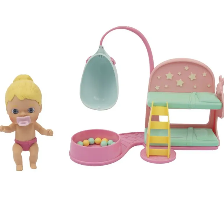 La habitación de los sueños de la colección de mini bebés Cicciobello & Friends Amicci, tiene todo lo necesario para jugar a dormir. Tiene dos camitas en forma de litera, con una escalera para subir a la litera de arriba. En la litera tendrás luces que brillan en la oscuridad. Además tiene una silla balancín y una piscina de bolas. Contiene mini accesorios para guardar en el baúl y un mini bebé de la colección. Recomendado a partir de 3 años.