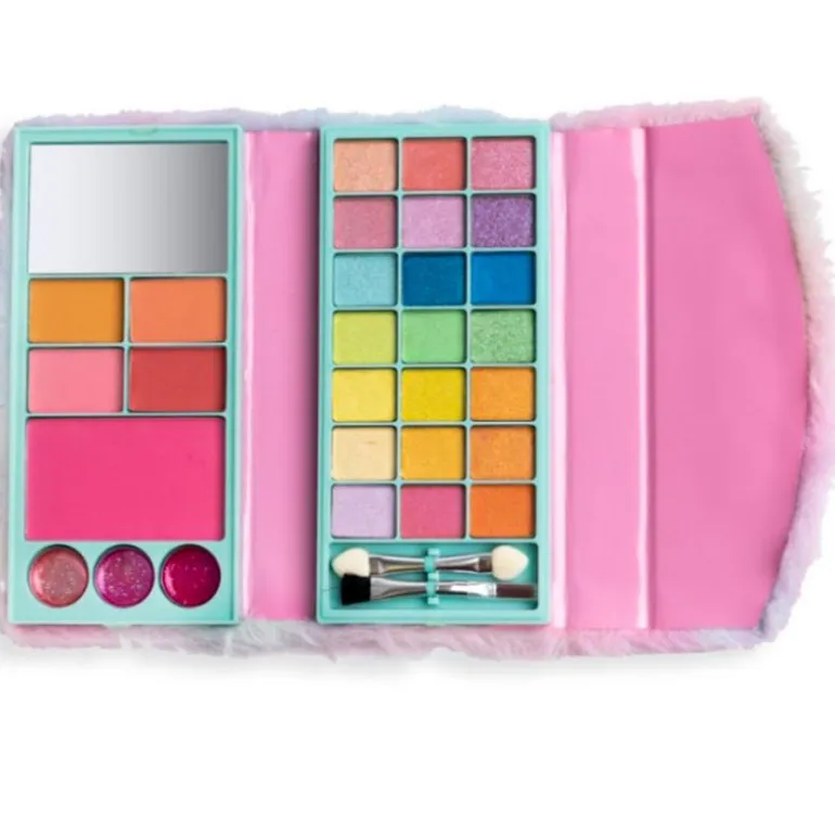 Paleta de maquillaje en el que encontrarás 21 sombras de ojos coloridas, 3 brillos de labios, 5 coloretes en polvo y 2 aplicadores.