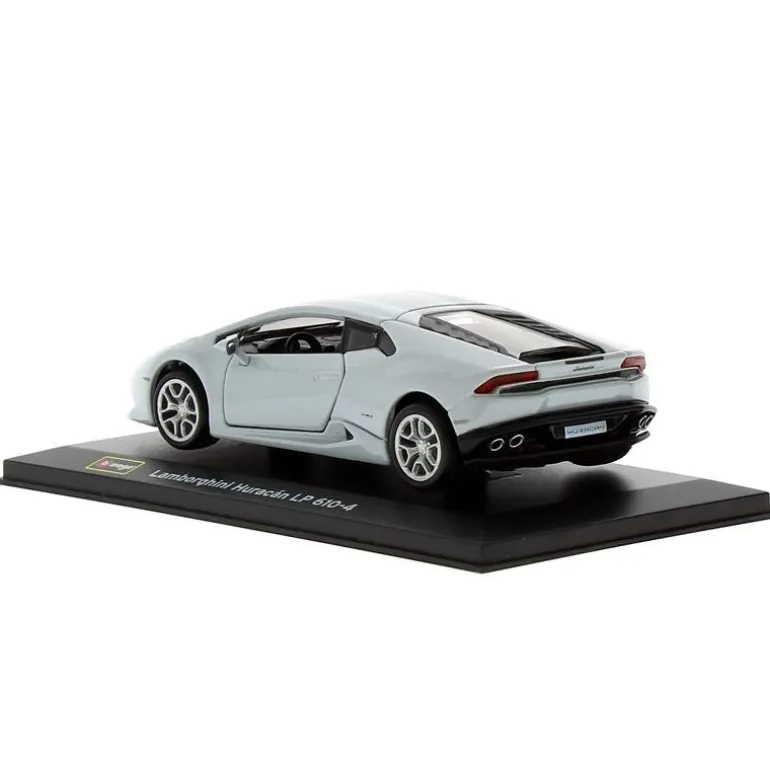 Vehículo de la marca Burago con peana y caja de metacrilato a escala 1:32 plus. Este modelo del Lamborghini Huracán LP 610 es una réplica exacta del original.