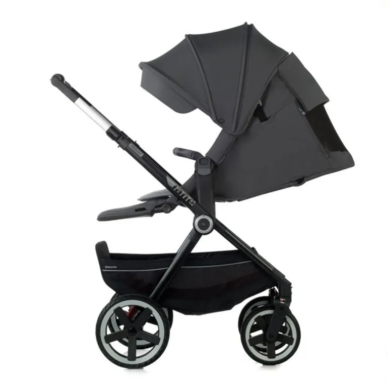 Dispone de un asa oval de aluminio incorporada en la capota para poder transportarlo, con protección de Pu Leather a juego del tapizado.