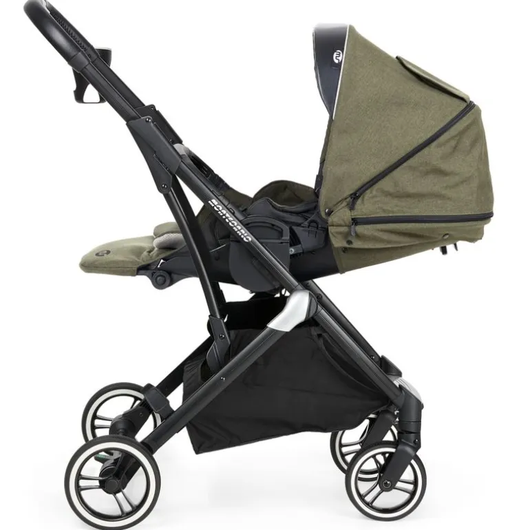 Práctico cochecito de 2 piezas para moverte por cualquier tipo de terreno, con una amplia y cómoda silla que se pliega muy compacta, que aguanta hasta los 22kg.